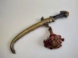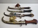 4 stuks Koumiya dolken Marokko , gemaakt uit metaal , hout , bladzilver , koper , textiel , totale lengte +/- 40 cm
