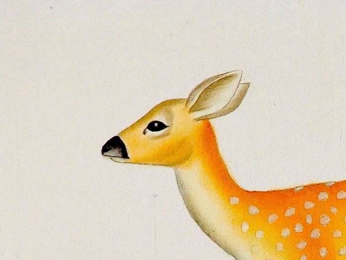 Media en ondersteuning: aquarel op fijn tissuepapier, geplakt op Japans papier, omlijst door een gouden lijn.