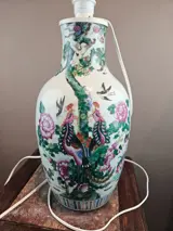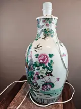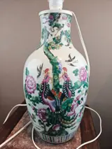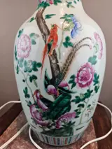 19e eeuwse Chinese famille rose vaas gemonteerd als lamp en elektrisch bedraad. 46cm hoogte. De onderkant van de vaas heeft een barst.