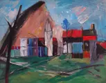 Schitterend stoffelijk werk in olieverf op doek van 65 bij 55 cm uit 1970 met handtekening op voor- en achterkant plus jaartal van uitvoering plus cartouche met referenties en stempels, binnen een eigentijdse lijst van totaal 75 bij 65 cm. gemeenschap Europeaan