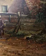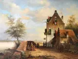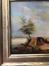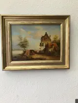 Prachtig schilderij (17 x 23) ,met fraaie lijst in de stijl van de romantiek van de Steenwijkse kunstenaar Lion Arie Feijen (1947) gemaakt rond 1980. Hij groeide op als zoon van de schilder Leo Feijen , wiens klantenkring hij overnam.