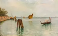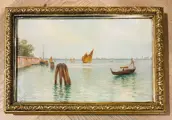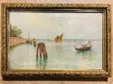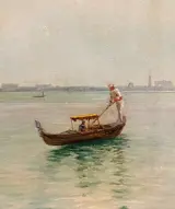 Een zeer fraai gondeltafereel in Venetië door de Deense kunstenaar Louis Isak Napoleon JENSEN (Kopenhagen 1858-1908)