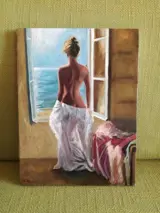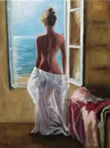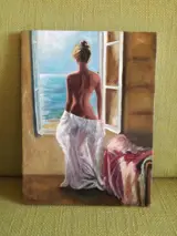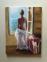 Prachtig werk van meester Luca Nobili, olieverf op doek 30 x 40 cm. Voorstellend een prachtig tafereel van een zeer sensuele vrouw in een witte jurk die halfnaakt uit het raam kijkt naar een prachtige blauwe zee en van ver naar de golven van de zee kijkt, in gedachten verzonken in de natuur met een fantastische verweving van kleuren die meesterlijk is uitgevoerd door de meester. Ik nodig je uit om te kijken naar het gezicht van het meisje en haar jurk, het licht, de jurk, de gelaatstrekken, de schaduwen en reflecties meesterlijk uitgevoerd, geschilderd in superieure kwaliteit. (De schilder op dit schilderij is geïnspireerd door Hanks) Geweldig werk. Waarneembaar is dat de meester Nobili, een veelzijdig schilder, slagvaardige en krachtige kleuren gebruikt met een sublieme natuurlijkheid. Liefdevolle scène van een buitenkant Dit werk is echt fantastisch, we merken de uitstekende picturale kwaliteit op, prachtige kleuren die er prachtig tussen zijn ingevoegd, waardoor het schilderij harmonieus en elegant wordt. Authenticatie door de schilder op de achterkant. Uit een privécollectie en aangetekende verzending.