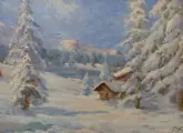 Prachtig sneeuwlandschap van de schilder Lucia Crotti (1870-1960).