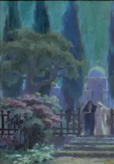 Oriëntalistisch landschap in het maanlicht