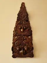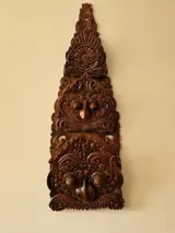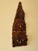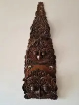 Groot Balinees handgesneden houten muur / magazine / krantenhouder uit de jaren 1950.