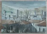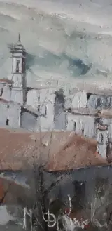 Olieverf op doek uit de jaren 70. Afmetingen: 70 x 50. Titel: Bergamo Alta. Medeondertekend op de achterkant voor authenticatie. Herkomst privécollectie en eerste aankoop rechtstreeks van de toen nog in het atelier wonende kunstenaar. Zorgvuldige verzending.