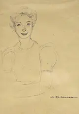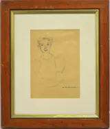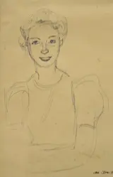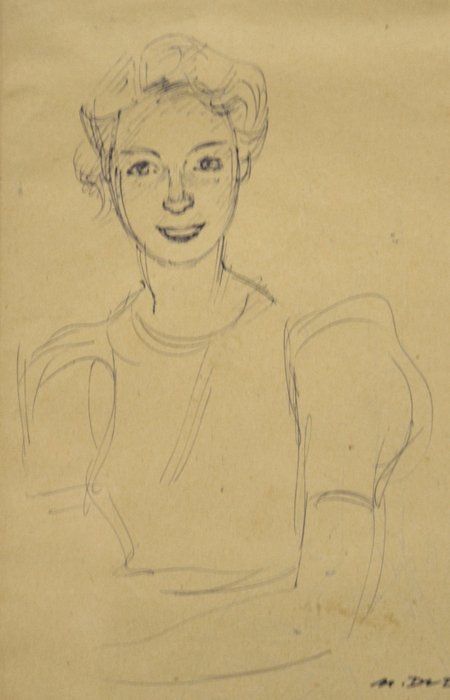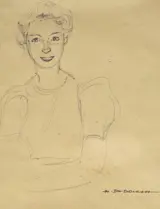 dubbelzijdige tekening op de voorzijde figuur van een meisje op de achterzijde tekening van een studeerkamer.