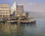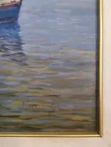 "Het oude Ligurië". Olieverfschilderij op canvas door Maria Giannino (1944 - Margherita van Savoye). Zeer goede picturale techniek, prettig gebruik van kleuren en tinten. Zeer goede staat van instandhouding, natuurlijk patina van de tijd (zoals te zien op de foto). Gevat in een mooie gegoten houten lijst met passepartout. Italië, 2e helft 20e eeuw. Afmetingen met lijst: cm 72 x 62 h.