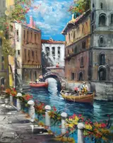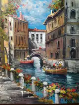 Prachtig olieverf op doek 40 x 50 van meester Marino Faliero (1948), Napolitaanse macchiaiolo-schilder (hij schildert graag kustgezichten, zeegezichten, landschappen en meer. Zijn werken verschijnen in openbare en particuliere collecties, in Italië en in het buitenland. Schilder van uitmuntend picturale hand. Beeltenis van een karakteristiek kanaal van Venetië met boten en oude gebouwen. Let op de uitstekende en delicate picturale hand van de schilder waar hij heldere kleuren en materialen gebruikt met natuurlijkheid en nauwkeurigheid, waardoor het schilderij harmonieus en elegant wordt. Op de achterkant, een korte biografie en handtekening van de schilder Herkomst uit een privécollectie en verzending met tracking