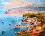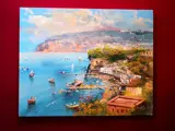 Prachtig en spectaculair olieverf op doek 40 x 50 van de Napolitaanse schilder Marino Faliero met het prachtige uitzicht op de kust van Amalfi.