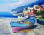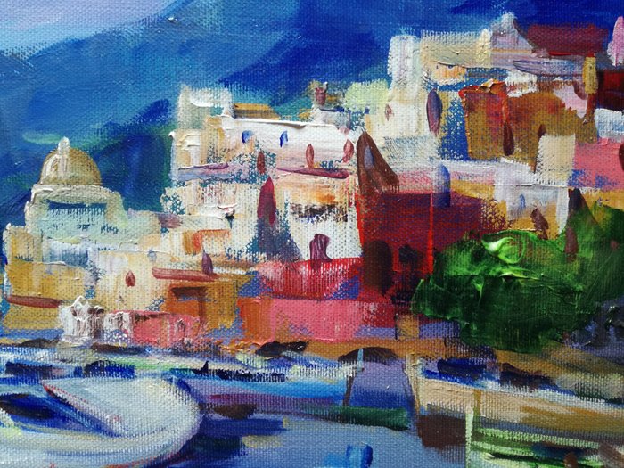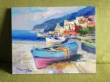 Prachtige olieverf op doek 40 x 50 van de meester Mario Smeraglia (een gedurfde en moderne Italiaanse schilder op zoek naar een vernieuwende lijn, met experimenten van technieken en nieuwe onderwerpen. Zijn werken verschijnen in openbare en particuliere collecties, in Italië en in het buitenland. Schilder van uitstekende picturale hand.Beeltenis van een karakteristiek strand aan de prachtige kust van Amalfi, met prachtige weerspiegelingen van het water, boten en met het dorp op de heuvel met prachtig uitgevoerde bloemen.Let op de uitstekende en delicate picturale hand van de schilder waar hij heldere kleuren en materialen bepaald met natuurlijkheid en nauwkeurigheid, waardoor het schilderij harmonieus en elegant is. Op de achterkant een korte biografie van de schilder. Afkomstig uit een privécollectie en verzending met tracking.