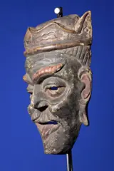 Masker – hout, sporen van verf – uit Guatemala of Mexico. Het stelt een koloniaal voor.