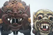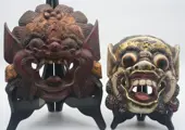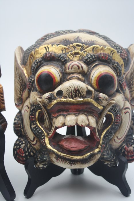 Twee Zeer fraaie maskers genaamd Balinese Barong Carved mask ,