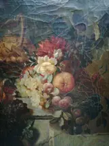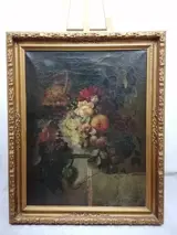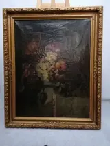 Kostbaar schilderij op canvas, gesigneerd rechtsonder, in een prachtige oude polychrome lijst.