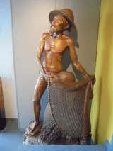 Uitgewerkt in hout en voorzien van zeer vele details, zie de spieren/ribben/koralen/voeten enz....