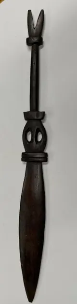Deze houten messen waren persoonlijke bezittingen. Hoe hoger de eigenaar in rang, hoe uitgebreider de messen waren. De meeste van die messen zijn begraven bij de eigenaar toen hij overleed.