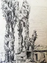 Michel Gordigiani. 1835 1909. Belangrijke schilder 800. En een van zijn tekeningen. Het papier en 800 is aan de achterzijde gesigneerd met leesbaar archiefnummer 36x30 cm.