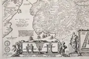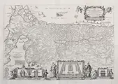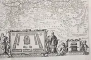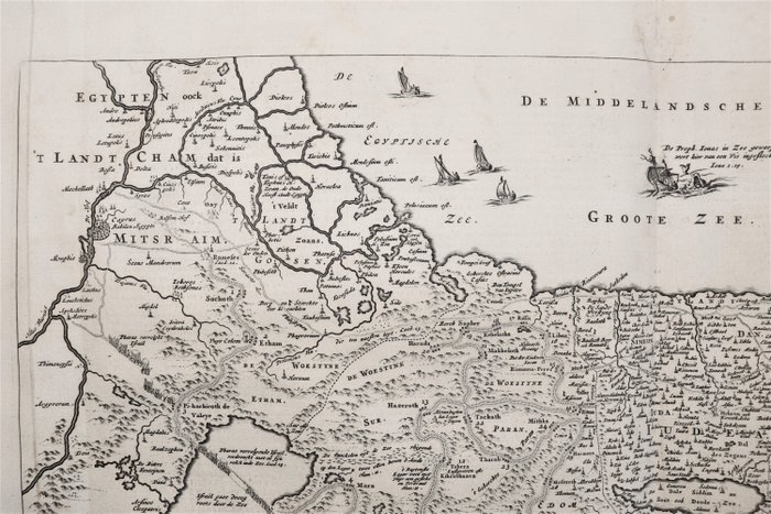 de 42 genummerde stopplaatsen tijdens de tocht in de wildernis. Onderaan in drie lijsten met afbeeldingen van tempelgerei, de opstelling van het legerterrein volgens de stammen van Israël. Bevat een mooie titelcartouche, schepen die zowel in de Middellandse Zee als in de Rode Zee varen, talloze putti en een scène van Jonas en de walvis.