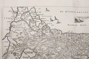 Decoratieve kaart van het Heilige Land door Nicolas Visscher. Het tonen van de uittocht van de stammen van Israël uit Egypte en