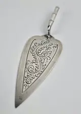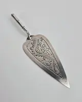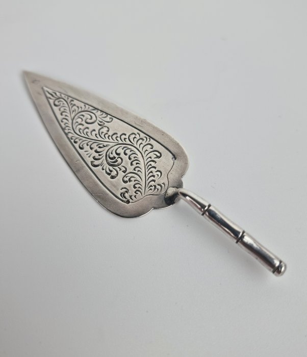 Chinees zilveren miniatuur taartspatel, bloemenincisie.