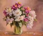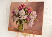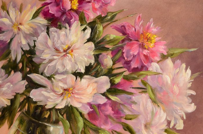 Origineel olieverfschilderij - Pioenrozen