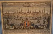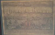 Boven het panorama staat een banier "Amstelodam