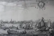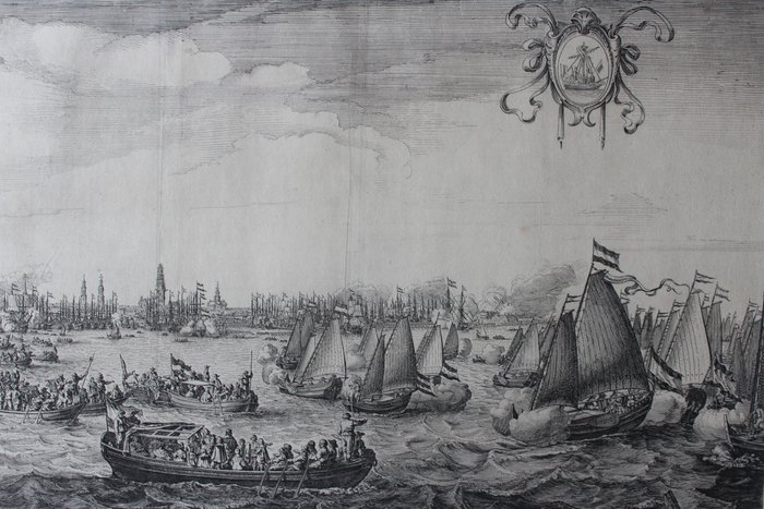 Kopergravure Het spelevaren tijdens het bezoek van Maria de' Medici op het Y, Salomon Savery.