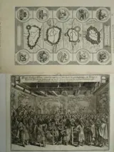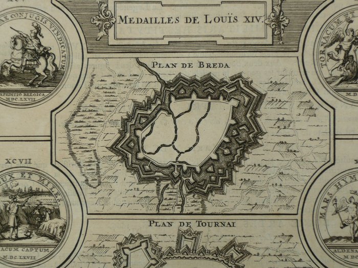 Toegevoegd; een kopergravure verschenen in; Histoire Abregée des Provinces-Unies des Pais-Bas, Ou l'on voit leurs progrés, leurs conquêtes, leur Gouvernement, et celui de leurs Compagnies en Orient & en Occident. Amsterdam. Jean Malherbe. 1701.