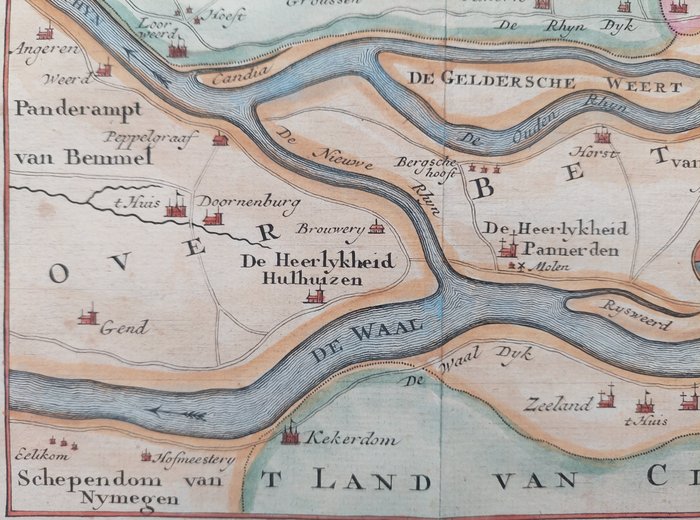 Handgekleurde kopergravure, uitgegeven in 1744 te Amsterdam door Isaak Tirion.
