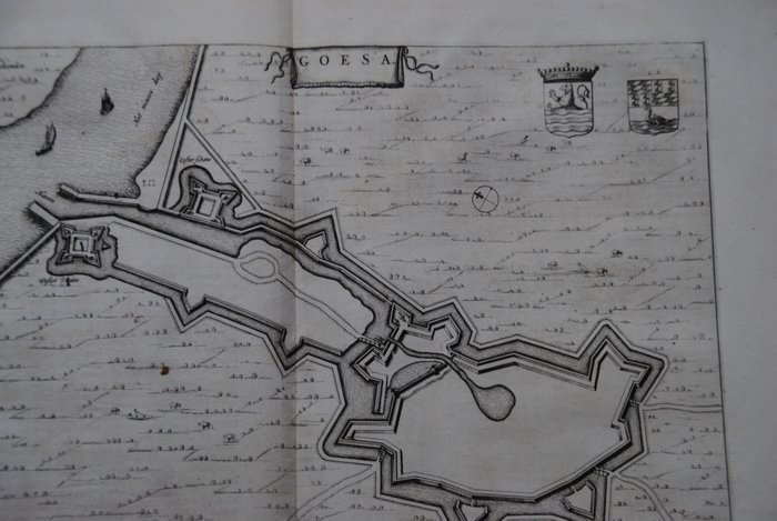 nFraaie stadsplattegrond van de Zeeuwse stad Goes, gelegen op het eiland Zuid-Beveland. Titel bovenaan in eenvoudige cartouche. De wapenschilden van Zeeland en Goes rechtsboven.nnKopergravure. Uitgegeven te Amsterdam door Joan Blaeu in 1649./ nnGoede conditie. Middenvouw als uitgegeven. Papier met ruime marges. Enkele lichte kreukjes. Een klein stukje marge manco in de hoek rechtsboven. Verso: Latijnse tekst. nnZie ook de foto's.nnVerzekerde verzending.NULL NULL NULL 2023-02-21 13:57:25 2023-02-21 13:57:25