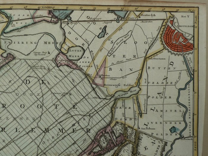 Nederland, Haarlemmermeer, Amsterdam, Schiphol; Isaac Trion - Nauwkeurige kaart van de Haarlemmer of Leidsemeer - 1721-1750