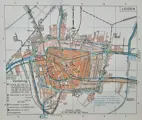 De plattegrond toont onder meer de verschillende uitbreidingen van de stad door de eeuwen heen.