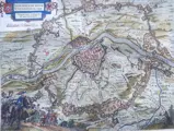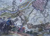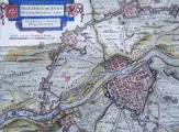 Fraaie kaart van de belegering en inname van Maastricht door de Staatse troepen onder leiding van Prins Frederik Hendrik (´de Stedendwinger´) in 1632 tijdens de 80-jarige oorlog tegen de Spanjaarden.