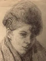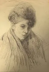 Tekening op papier door Nicola Ciletti (cm 31 x 21). Titel "Portret van een vrouw".