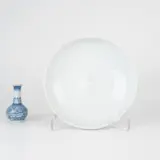 Een mooie antieke Chinese porseleinen ondiepe schaal met een prachtige gecraqueleerde monochrome witte decoratie. Handgemaakt in het oude China tijdens de late Ming tot vroege Qing-dynastie (ca. 1640-60), of mogelijk veel eerder (Dingyao?). Aan de achterzijde een typische ongeglazuurde voetrand. Gegarandeerd origineel en van de aangegeven periode, of eerder.