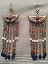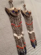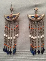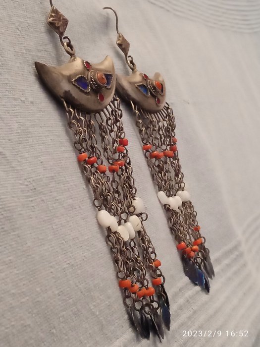 Er is emaille beschadigd door gebruik en tijd (misschien geretoucheerd) en een deel van de hanger ontbreekt aan een van de oorbellen (zie laatste fotografische afbeeldingen, bedankt).