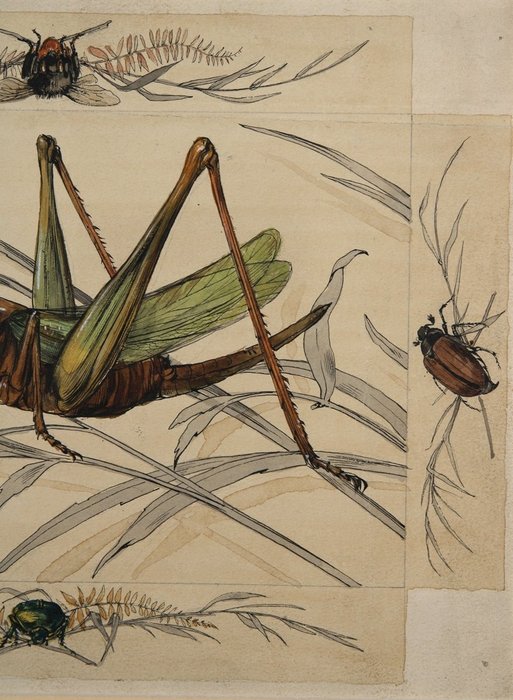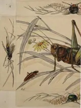Er worden verschillende insecten getoond: b.v. Hooipaard (sprinkhaan), hommel, mestkever, meikever