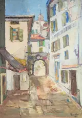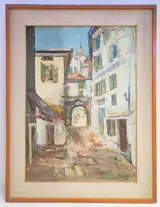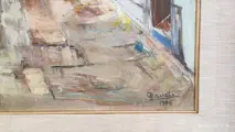 Paolo Canetti, van oorsprong Milanees en roeping, werd in 1940 geboren in een familie van schilders en vanaf de eerste jaren van zijn leven ontwikkelde hij deze aanleg door kunstacademies te volgen en in de voetsporen van zijn vader te treden. De eerste solotentoonstelling in Milaan dateert van 1968 en komt over een paar jaar aan om te exposeren in prestigieuze internationale galerijen, van Frankrijk tot Japan en Amerika. Al in de beginjaren komt de voorliefde voor bepaalde onderwerpen, huizen en landschappen, warme kleuren en weelderige natuur aan het licht. Een schilderij dat je doet mediteren, geïnternaliseerd maar sociaal. De volwassen Canetti gaat uit van een formele en chromatische vooruitgang, zonder zich te laten meeslepen door de verbitterde virtuositeit van zijn andere jonge collega's. Een serene aard die zich identificeert met de teleurstelling van de meest nederige mannen, steeds meer aandacht voor formeel onderzoek en toekomstige resultaten. Na een lange kubistische periode keert hij enigszins terug naar wat zijn oorspronkelijke stijl was, in scènes met onderliggende aandacht, met illustraties van het sociale leven. In het huidige Canetti voelt en merkt men de afwijzing van de cultuur van het negatieve. Het schilderij dateert uit 1966, meet 50x70 en is geschilderd op canvas. Het komt uit mijn privécollectie.