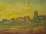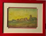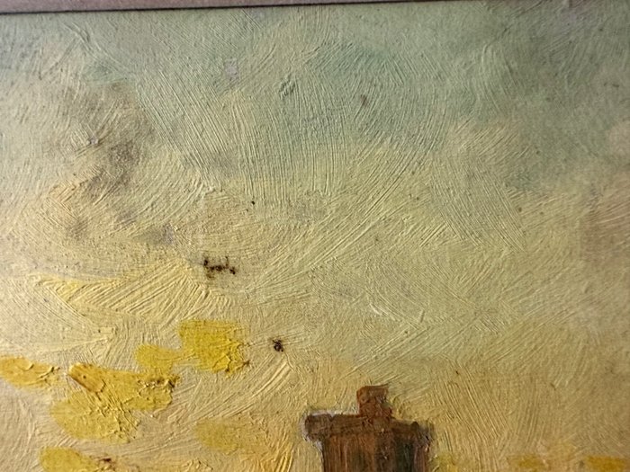 Gesigneerd rechtsonder, ingelijst formaat 30 x 38 cm.