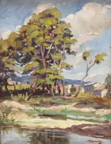 Willem Horselenberg ( 1881-1961 ) - Bootje aan de vaart