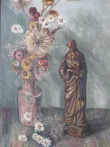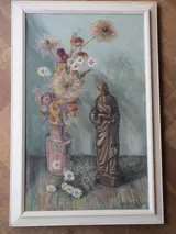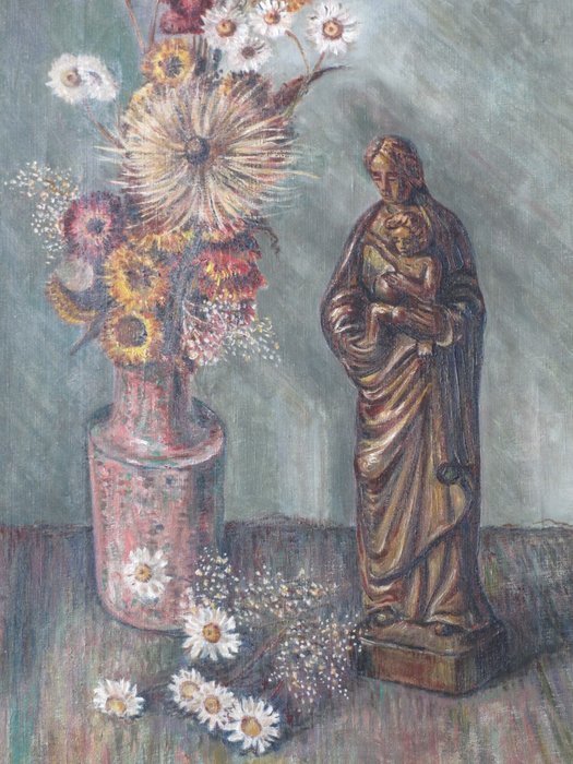Voorstelling van een stilleven met een houten Mariabeeldje