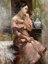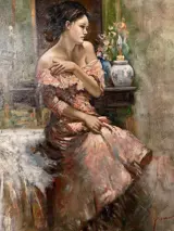 Pino Daeni was een Italiaans-Amerikaanse boekillustrator en kunstenaar. Zijn kenmerkende penseelvoering wordt gekenmerkt door zacht verlichte vrouwtjes geschilderd met zachte groenachtige schaduwen en kenmerkende, dikke pastelkleurige highlights, vaak met levendige gekleurde jurken en achtergronden. Bekend om zijn vermogen om vluchtige uitdrukkingen en bewegingen vast te leggen, zijn zijn vrouwen vaak in gedachten verzonken of wachtend op hun geliefden