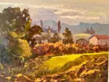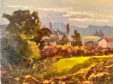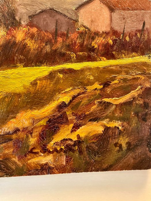 Prachtig schilderij van opmerkelijke kwaliteit en interessant voor verzamelaars - een glimp van een post-Macchiaiolo-landschap