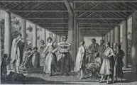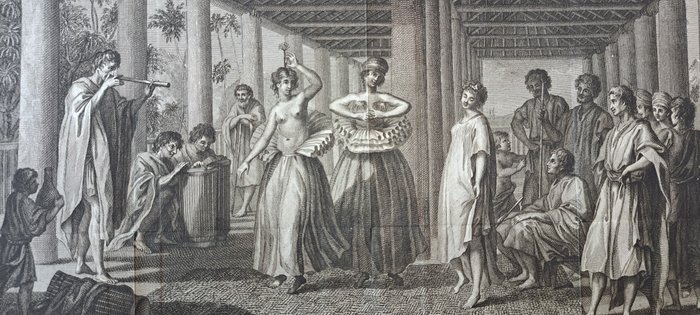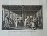 1. ''Gezigt van een Binnenhuis op het Eiland Ulietea. Vertooning van eenen Dans'' Gezicht op het interieur van een huis op Ulietea (Raiatea). Dansvoorstelling], hoogte 20 x breedte 32,3 cm. Plaat XII. Gesigneerd in de plaat rechtsonder: ''J.S. Klauber Sc.''. Afgeleid van een originele tekening van Sydney Parkinson, een Schotse botanische en natuurhistorische kunstenaar, werkzaam op Cook's eerste Endeavour-reis (1768-1771), later ontwikkeld door de kunstenaars Cipriani en Bartolozzi.