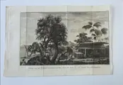 1. ''Gezigt van het Eiland Huaheine met het Huis van God en een Altaar met Offerhanden'', hoogte 20,5 x breedte 34,5 cm . Plaat X. Gesigneerd in de plaat rechtsonder: ''J.S. Klauber Sc.''. Naar een originele veldtekening van Sidney Parkinson, Schotse botanische en natuurhistorische kunstenaar, werkzaam op Cook's eerste Endeavour-reis (1768-1771).