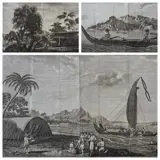 Drie prenten met verschillende scènes op Polynesische eilanden bezocht door kapitein James Cook: Huaheine en Ulietea (Raiatea) - Genootschapseilanden en Santa Christina (Tahuata) - Marquesas-eilanden. Tegenwoordig maken alle drie de eilanden deel uit van Frans-Polynesië.