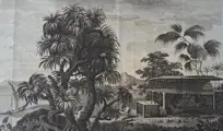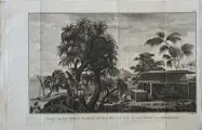 2. ''Gezigt van de Resolutie Baai, aan het Eiland St Christina, een der Marquisen Eilanden'' [Resolution Bay in the Marquesas], hoogte 20,5 x breedte 35 cm. Plaat XLIII. Niet ondertekend. Naar William Hodges, 1776, afdruk gemaakt door Benjamin Pouncy. Oorspronkelijk gepubliceerd in 1776 en later heruitgegeven als illustratie bij Cook's 'Een reis naar de Zuidpool' in 1777'. Tahuata kreeg in 1774 bezoek van kapitein James Cook, die in zijn logboek opmerkte dat de naam van het eiland genaamd Santa Christina door Mendaña bekend stond als Ohitahoo.