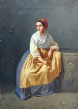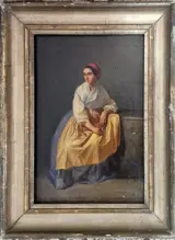 Het is in een redelijk goede staat van instandhouding, in patina, eerste canvas en coeval brancard.