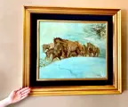 * De lijst is bevestigd als een vriendelijk geschenk, het is een extra element aan het kunstwerk dat we uit beleefdheid invoegen. Claims op mogelijke transportschade (hoe zeldzaam ook) die alleen aan het frame kan ontstaan, worden niet geaccepteerd. Onze werken reizen in alle veiligheid met beschermende en professionele verpakkingen en verzekerde verzendingen